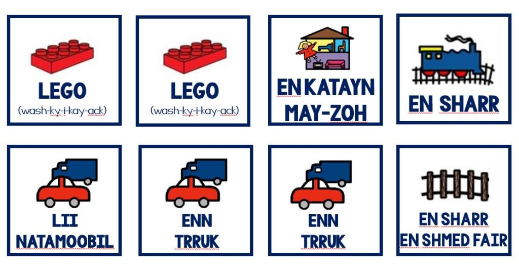 I then labelled all of the toys, with visuals as well as the Michif word to describe the toy. I hope that later on I can record our Noohkoom’s voice to have as QR code on the items so the students can hear her voice and pronunciation when they scan the toys with the tablets.